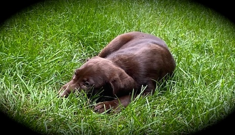 Nice grass, I love it. Who is this boy trying to grab me? Come on I can easily fool him and run around the house. Oh Oh! I need to potty. I am loving this; rolling on the grass and stretching my legs; just hope I don’t have to get back to the van again.