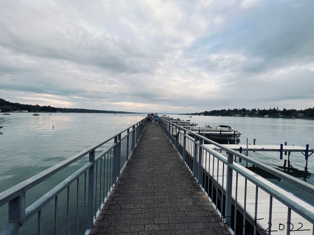 As I walked down the pier, I could hear a local jazz band playing music from “The Fiddler on the Roof”, bringing back memories of my school concert days. A huge crowd of senior citizens had gathered for the last performance of the season. Even though the sun chose to hide behind the clouds, I was in awe of the crystal clear lake, and the overpowering streaks of grey and white clouds that loomed above it. The water was transparent and I could see the clear pebbles at the bottom of the lake closer to the pier. I stared at the unique bluish grey possessing beauty where the sky and the water merged at the horizon and soaked myself into this alluring moment.