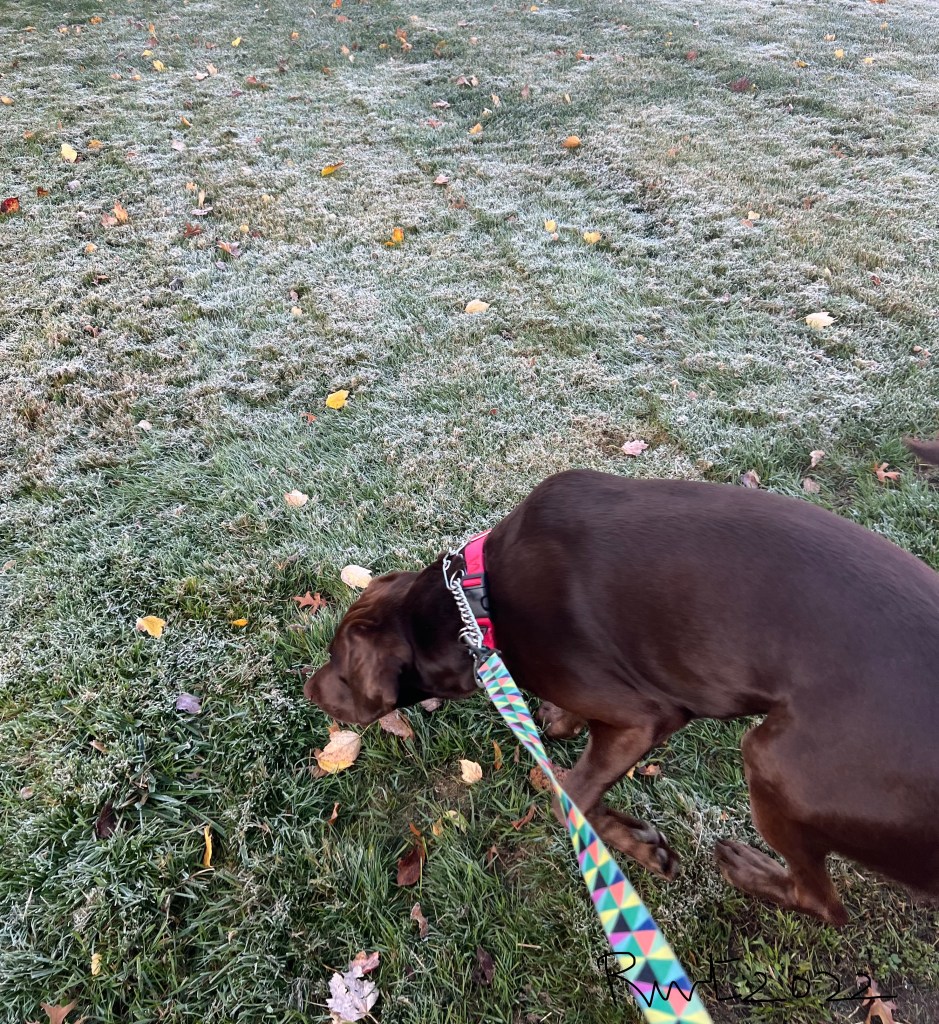 Fall is a lovely season. Nature celebrates itself by displaying vibrant colors ranging from shades of yellow to orange all around. This year it has been more enjoyable, thanks to Rocky. I want to share some of our adventures together exploring the nature during our daily morning walks. I love the fact that he stops to explore the wonders of nature be it the morning fog or frost or just staring at a colorful leaf falling off a tree swaying in the wind or the noisy migrating geese.