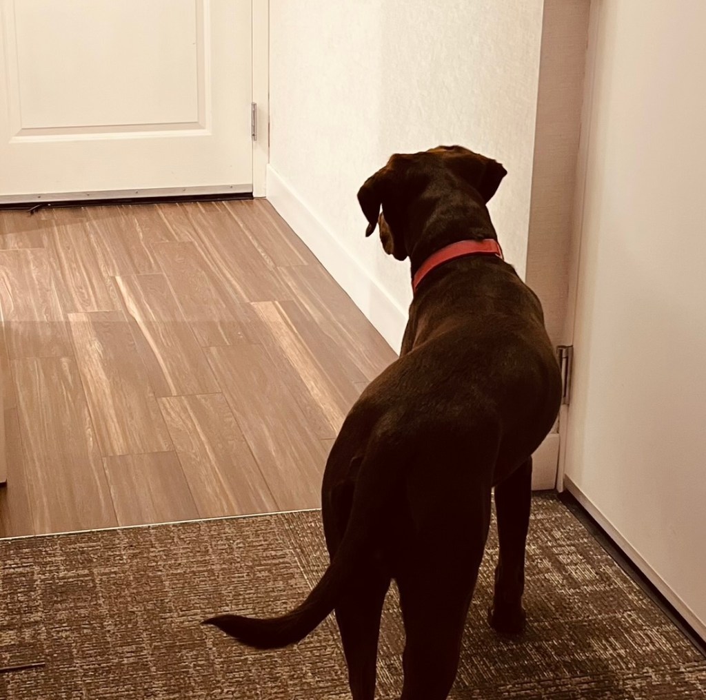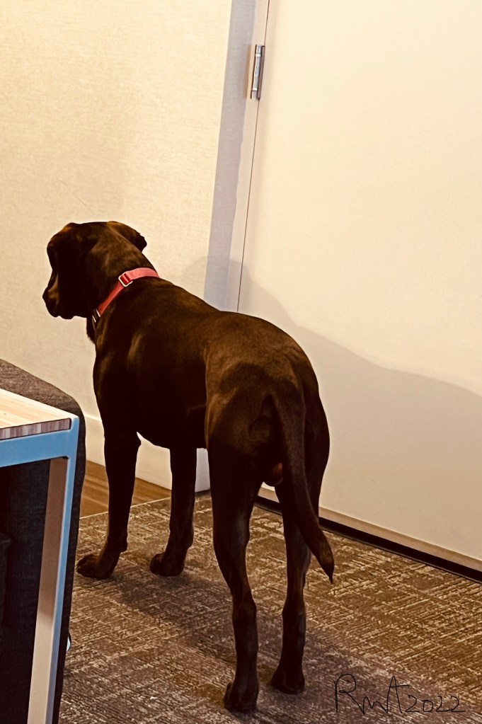 We go out for a quick walk and Rocky behaves pretty well and also does his daily business. Well, this time on the way back to the room, he resisted getting inside the elevator. ” Noooo not again …… my heads spins in there!” We finally make it back to our room.