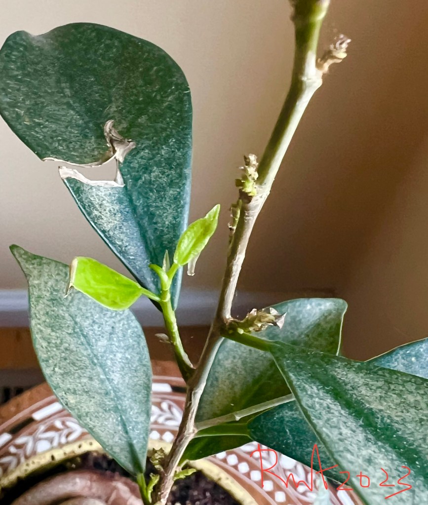 February: The sight of fresh new leaves on my indoor plant finally brought some relief and a smile to my face. But at the same time I felt heavy hearted when I saw the few remaining old leaves that were about to die and fall off….