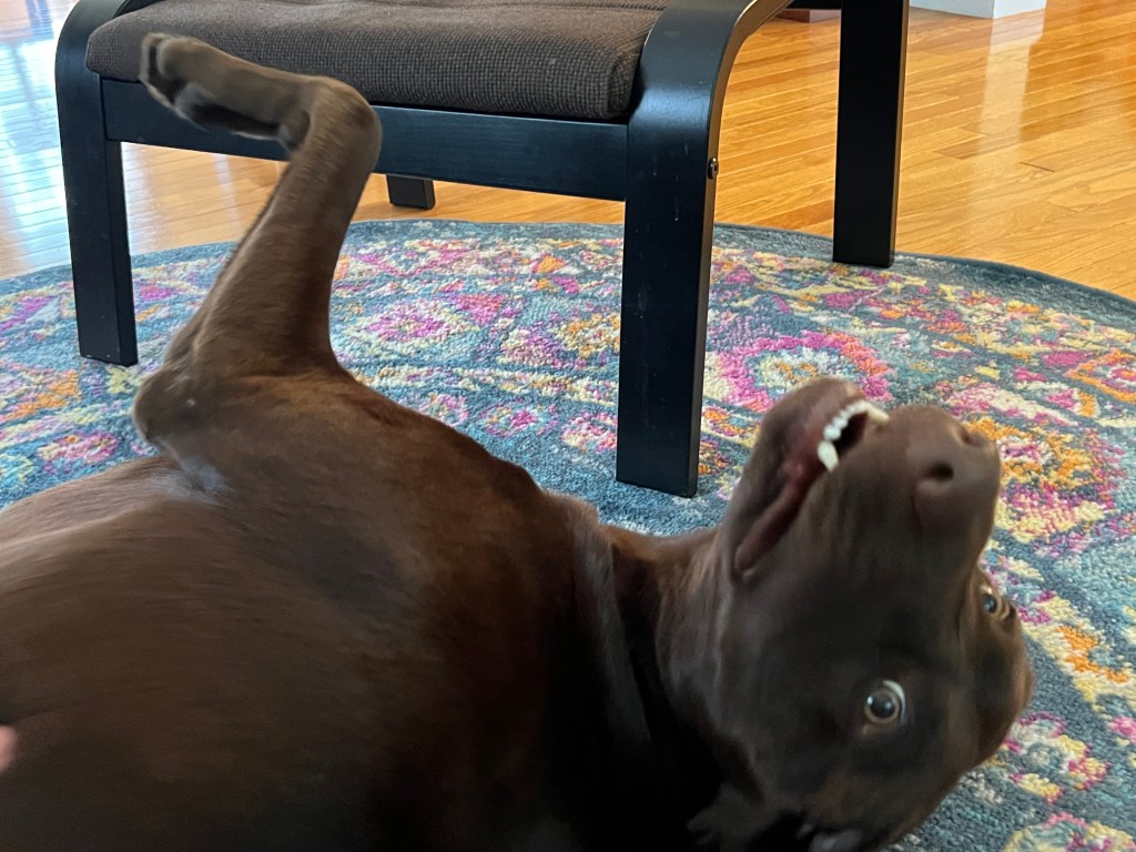 But don’t be mistaken by his expression in the above photo. Rocky is not trying to scare us but that’s a rewarding smile showing his teeth! He indeed shows his gratitude everyday for all the little things we do or share with him. I just love this smile but it definitely look me awhile to understand that it is a broad smile showing his teeth!