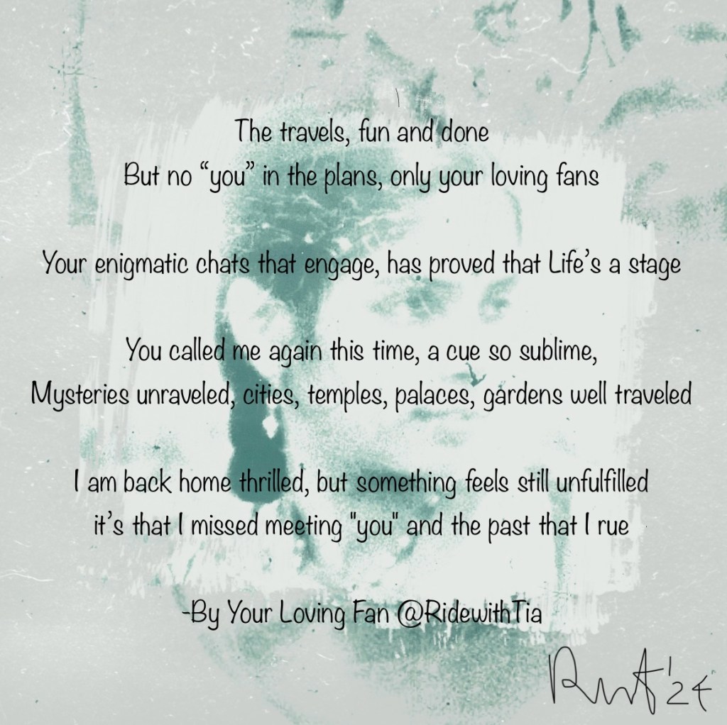 a message today @ 2.4.2024 Posted byridewithtiaFebruary 4, 2024January 19, 2026Posted inMortal worldTags:a tribute, affection, feelings, happy birthday, love, messages, missing, rememberance, Unexplained Share this: Share on X (Opens in new window) X Share on Facebook (Opens in new window) Facebook More Email a link to a friend (Opens in new window) Email Share on WhatsApp (Opens in new window) WhatsApp Like Loading... Related