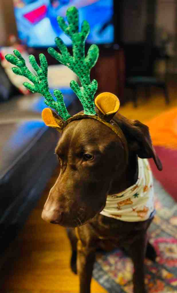 Rocky is back from his grooming appointment, and he smells absolutely delicious—like gingerbread cookies, with a touch of holiday magic. He’s wearing the cutest bandana from Petco, festive and full of cheer, along with a Christmas headband, ready to spread some seasonal joy!