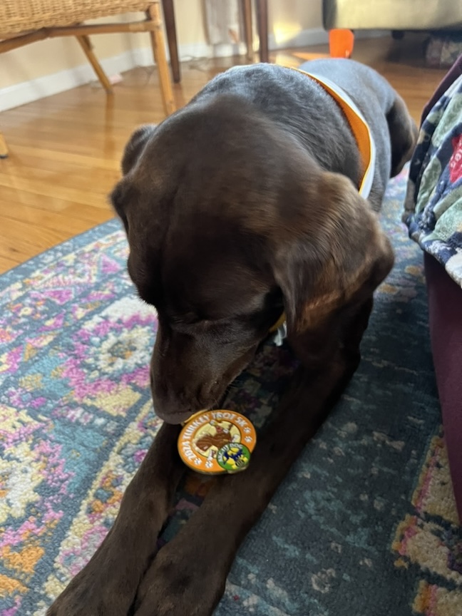 Rocky walks over 3 miles every day—rain, snow, or shine—and absolutely loves this daily ritual. He looks forward to it with eager anticipation! This year, to celebrate all the hard work he puts in, Rocky earned an AKC (American Kennel Club) Fit Dog 2024 Turkey Trot Medallion on Christmas Day, a well-deserved reward for his dedication and daily walks!